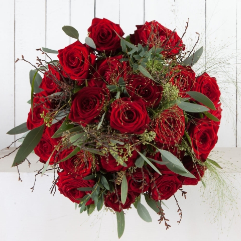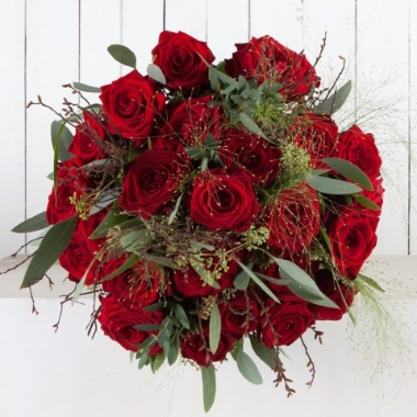 A real statement of love: the most luxurious red roses with complimenting foliage and flowers in the traditional 12, a very special 24, a fabulous 50 or jaw dropping 100 - a true declaration of love!