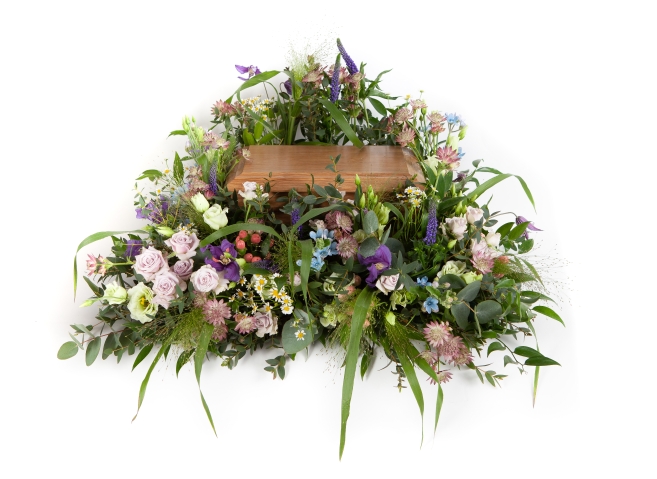 We can create a beautiful floral decoration for an internment to hold the ashes of a loved one. Please call us if you would like to discuss your requirements.