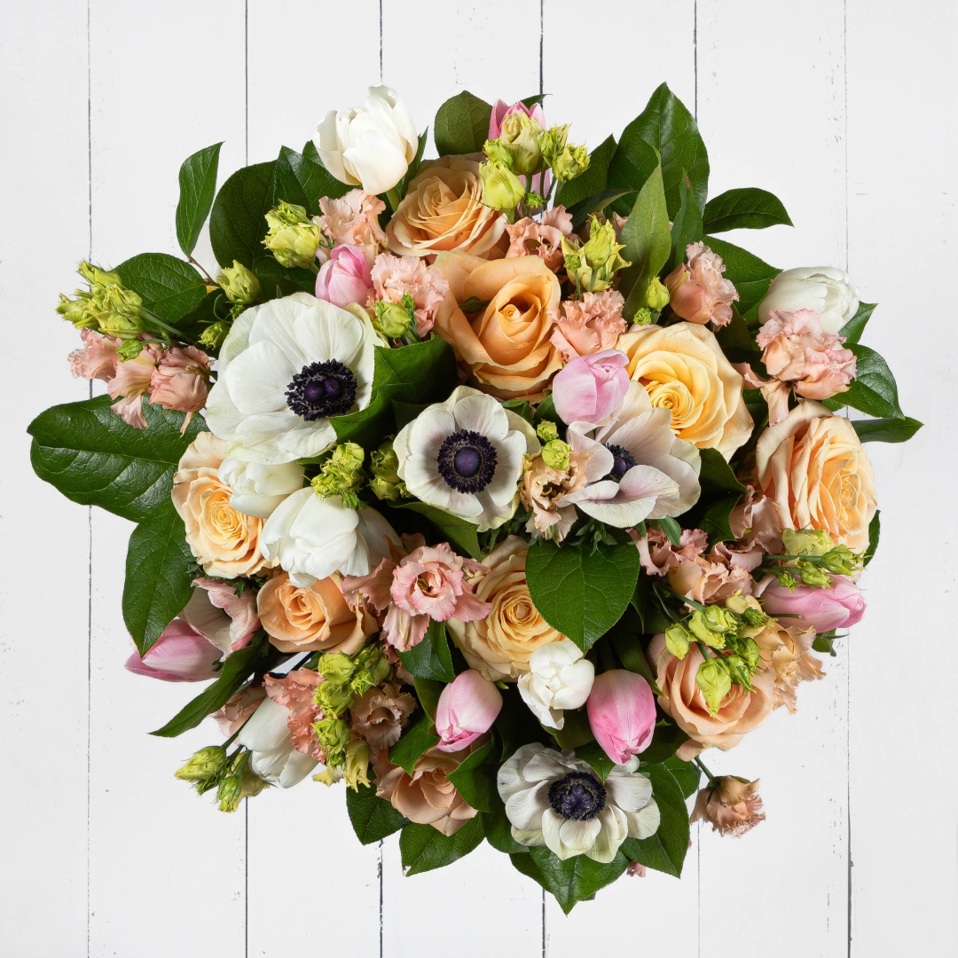 SOmething for The Greatest Mum! This stunning bouquet is packed with Pink, Peach and white Spring flowers.