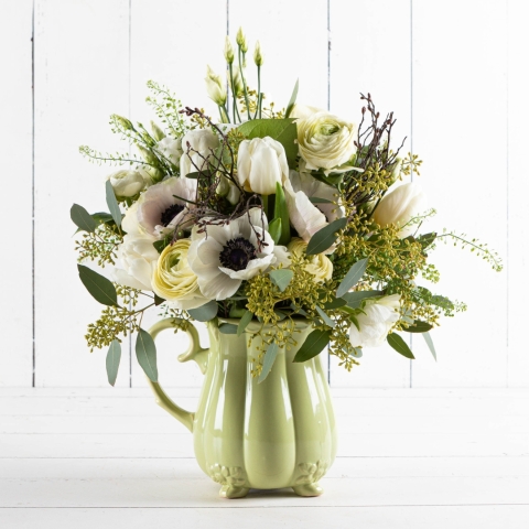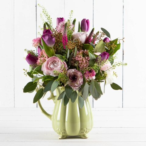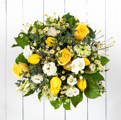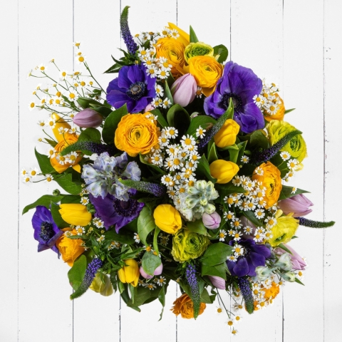 Our bouquets are hand made with care in our shops by us using the finest flowers available in the U.K. They are luxuriously wrapped in our signature style and your bouquet will arrive with a pretty flower card with your personal message.