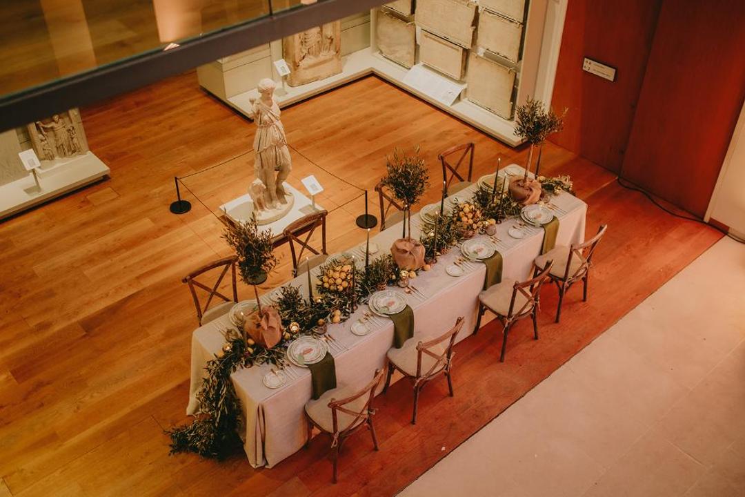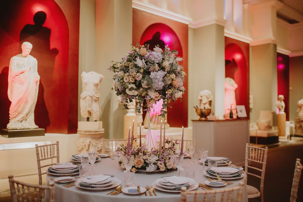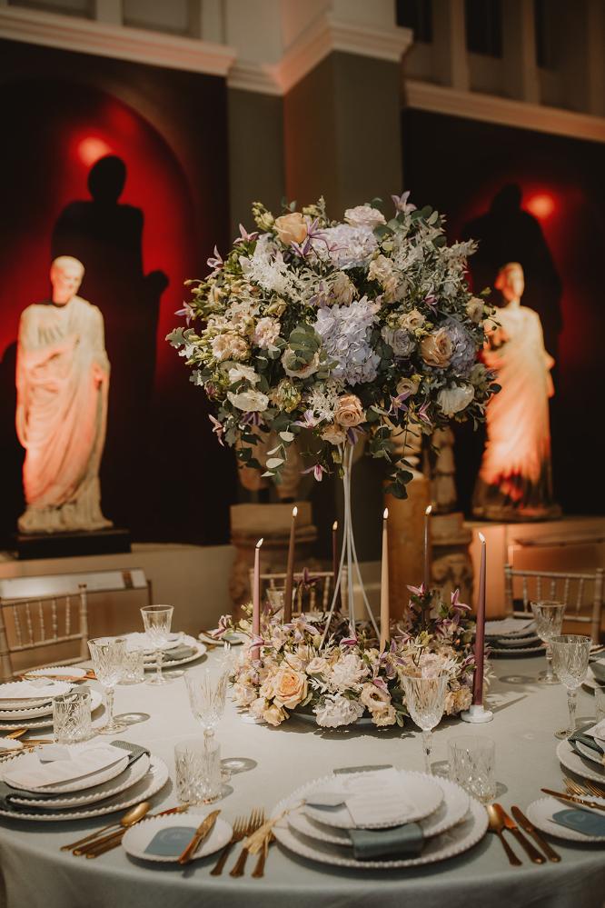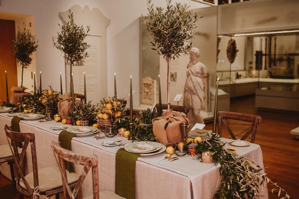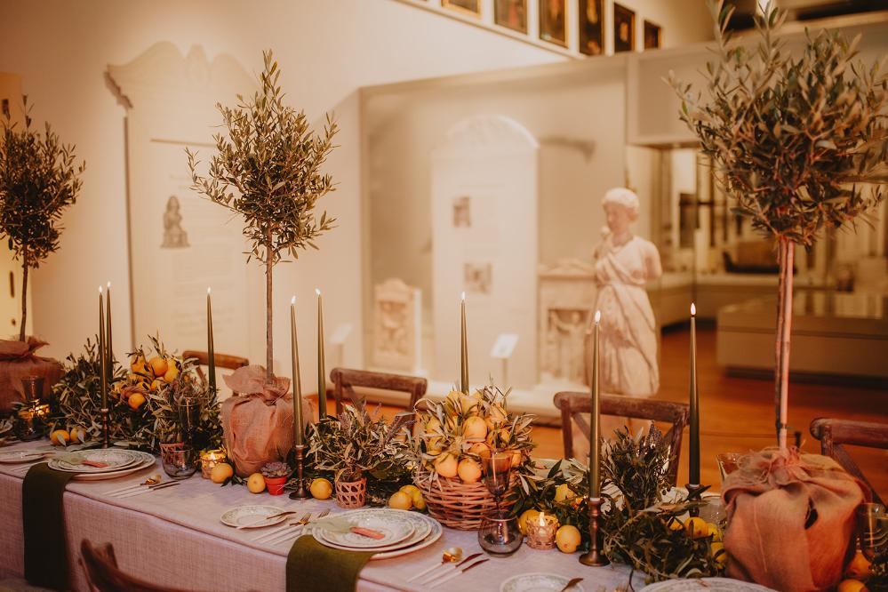 Our Mediterranean table, inspired by the museum's rich collection of Greek and Roman statues, was a visual symphony. The floral arrangements evoked the colours and textures of the Mediterranean landscape, featuring olives, lavender, lemons. It was a celebration of nature's bounty, reminiscent of celebrations in Tuscany and the Greek isles.