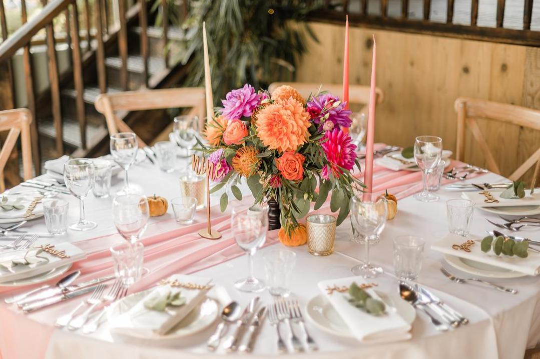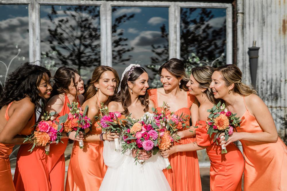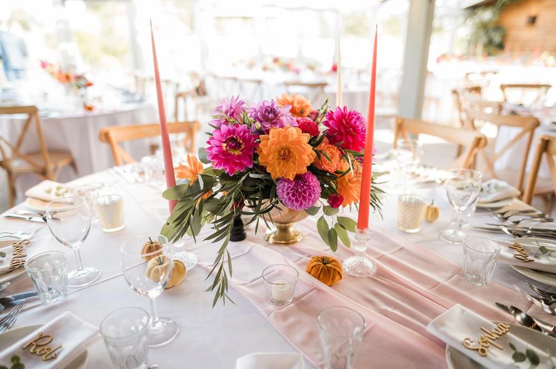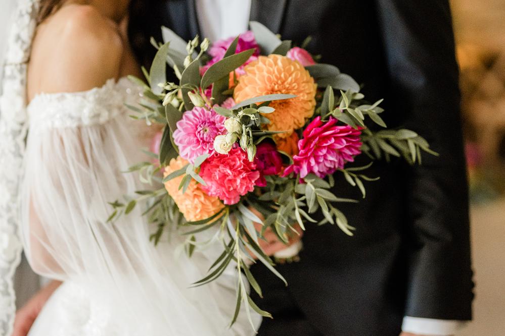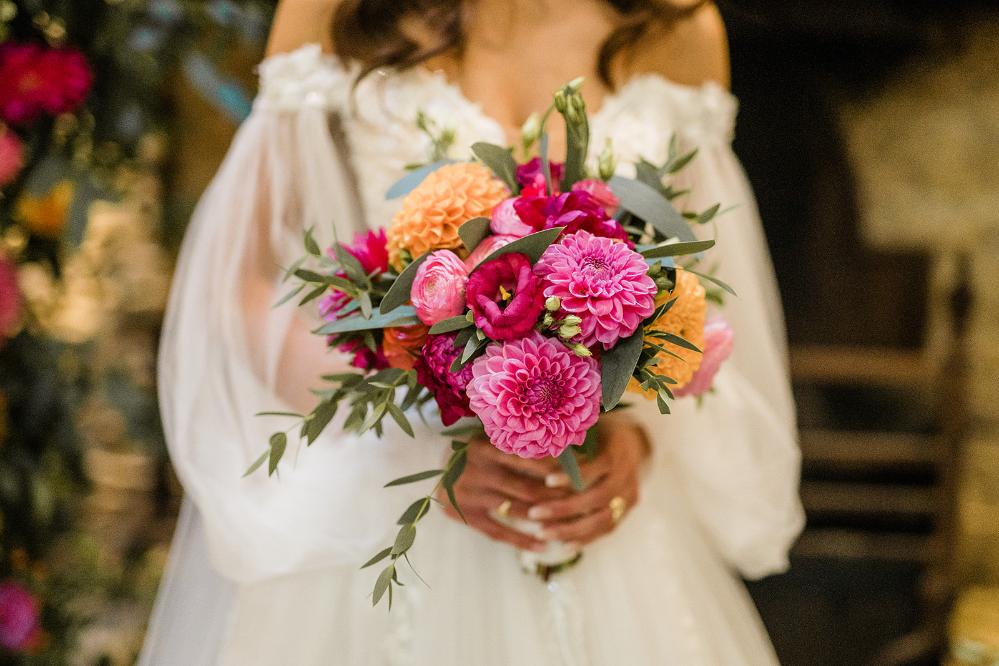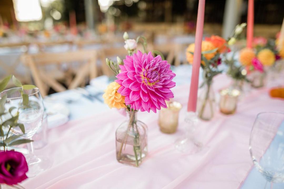 The bouquets reflected the colour pop theme with relaxed, whimsical bouquets of Dahlias in different shapes and sizes.
