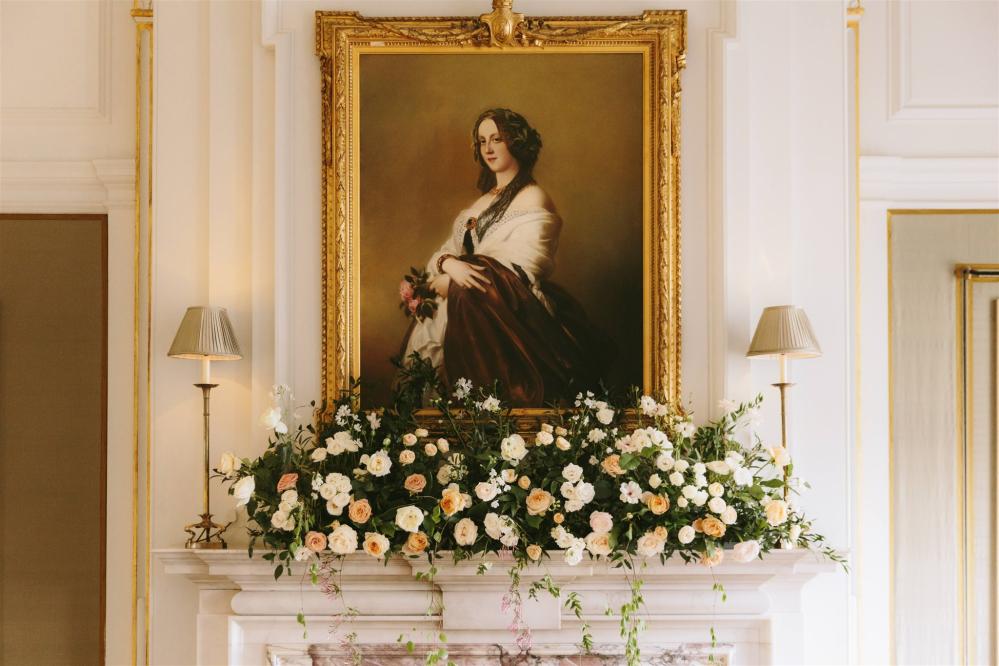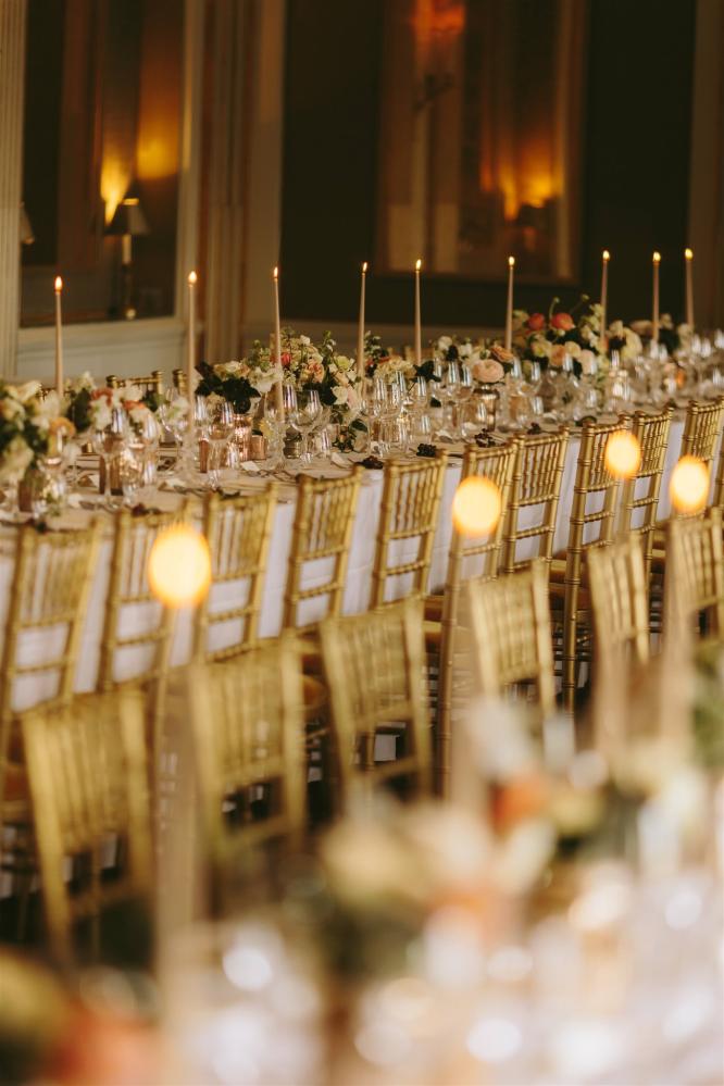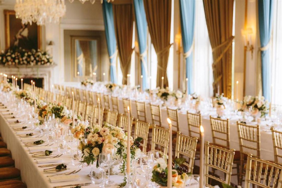 At the stunning Cliveden we designed a romantic tablescape of muted gold punch bowls and vases overflowing with