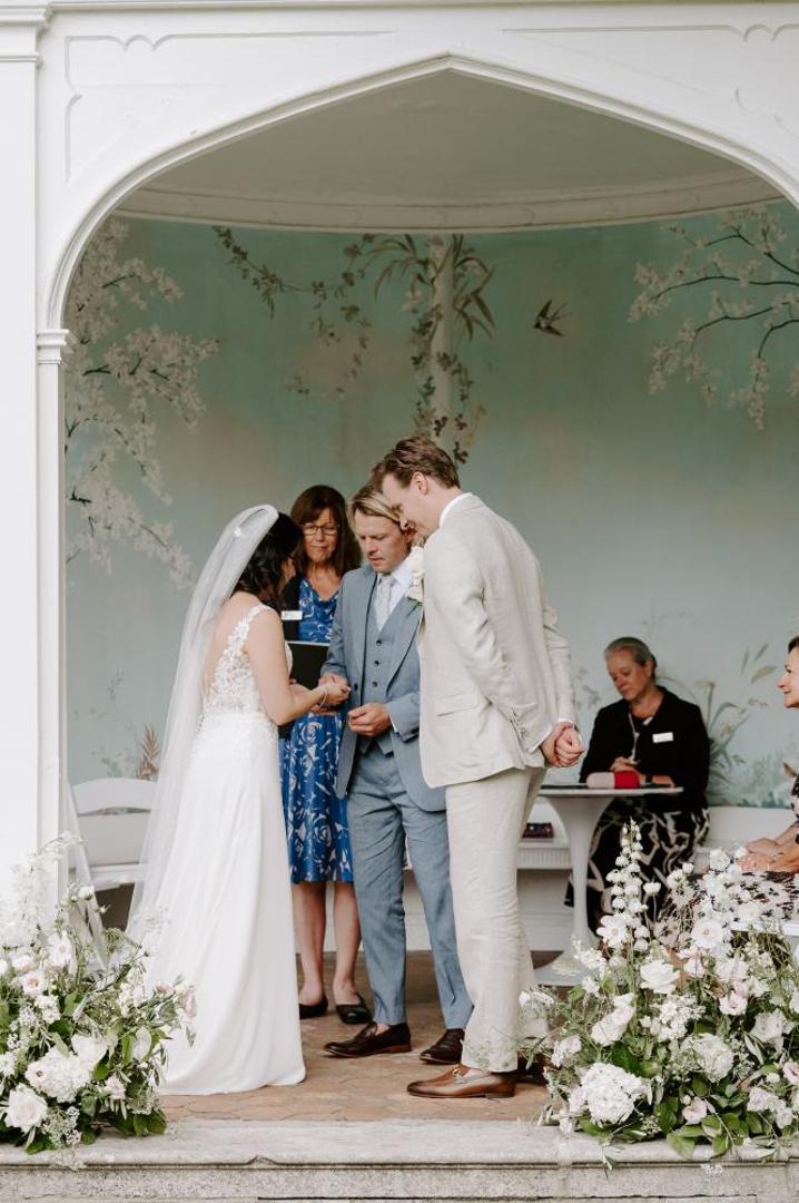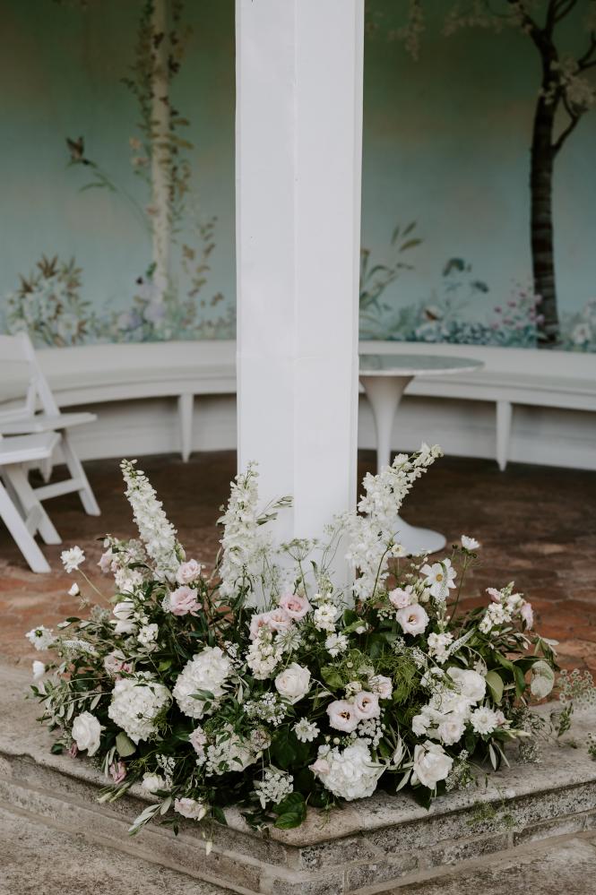 Emma and Adam wanted to create a romantic, informal look for their big day. We designed Garden meadows to line the aisle and frame the couple during the ceremony in a garden summer house.
