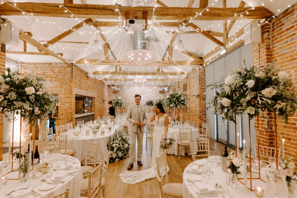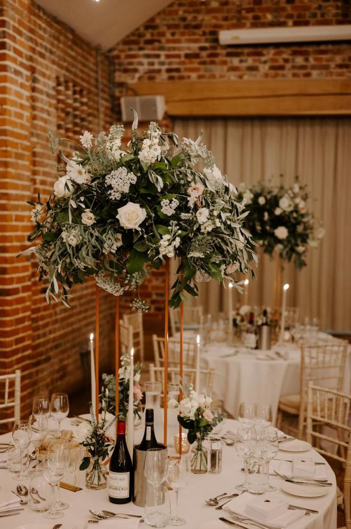 Emma loved the idea of some height on the reception tables to create a wow factor and some drama as guests entered the room and the meadow trays were then placed in front of the top table.