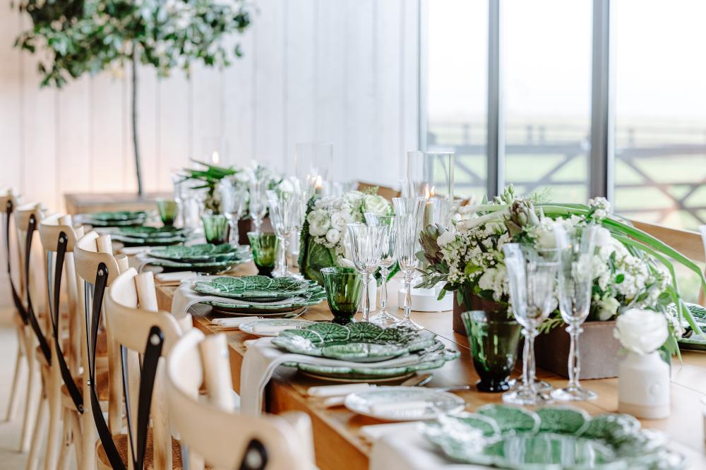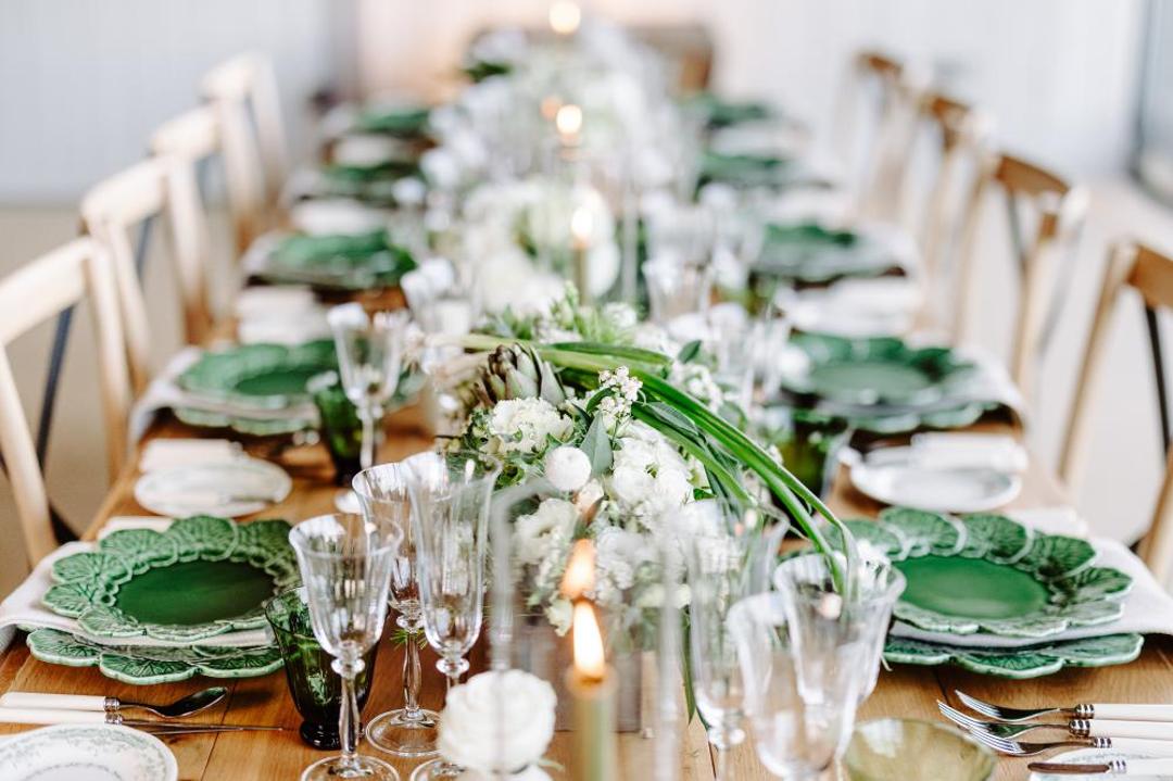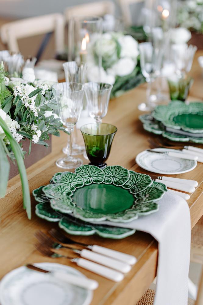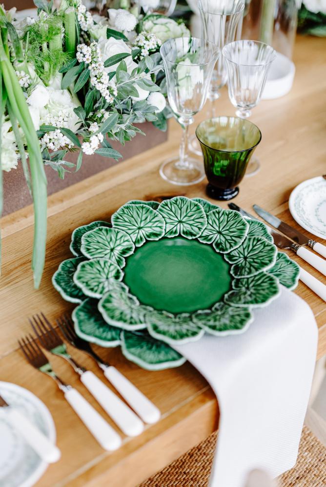 The inspiration began with the leafy green tableware, which immediately conjured images of flourishing gardens. From there, we built layers of texture and tone, using flowers, greenery, and carefully curated decorative elements to create a cohesive look.