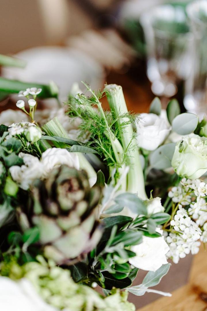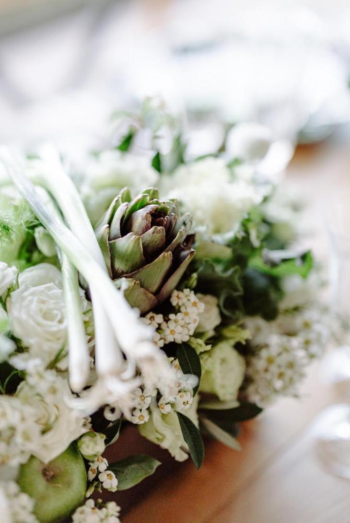 Artichokes, which added an unexpected and contemporary twist to the arrangements.