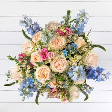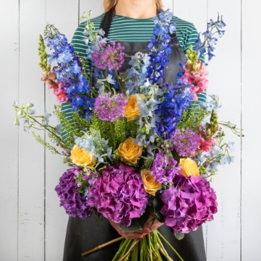 Our bouquets are hand made with care in our shops by us using the finest flowers available in the U.K. They are luxuriously wrapped in our signature style and your bouquet will arrive with a pretty flower card with your personal message.